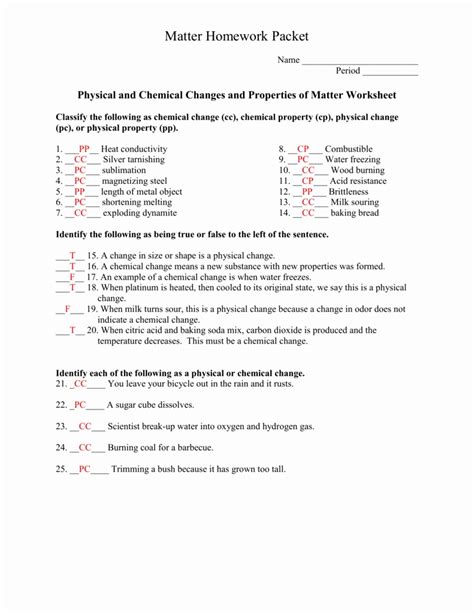 Download Chapter 1 Matter Change Worksheet Answers Doc